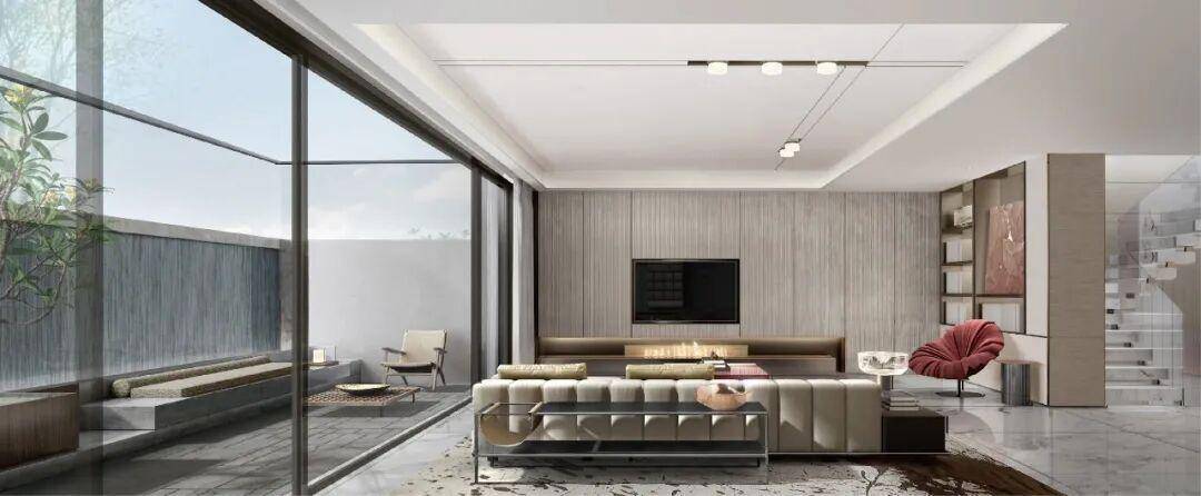 而大面积玻璃幕墙的运用,使得光影的无穷魅力得以充分释放,利用丰富自然光,将室内的光与影营造出来千变万化,朴素细腻的生活细节得以清晰展开。