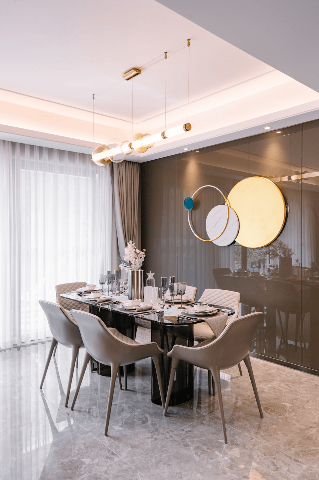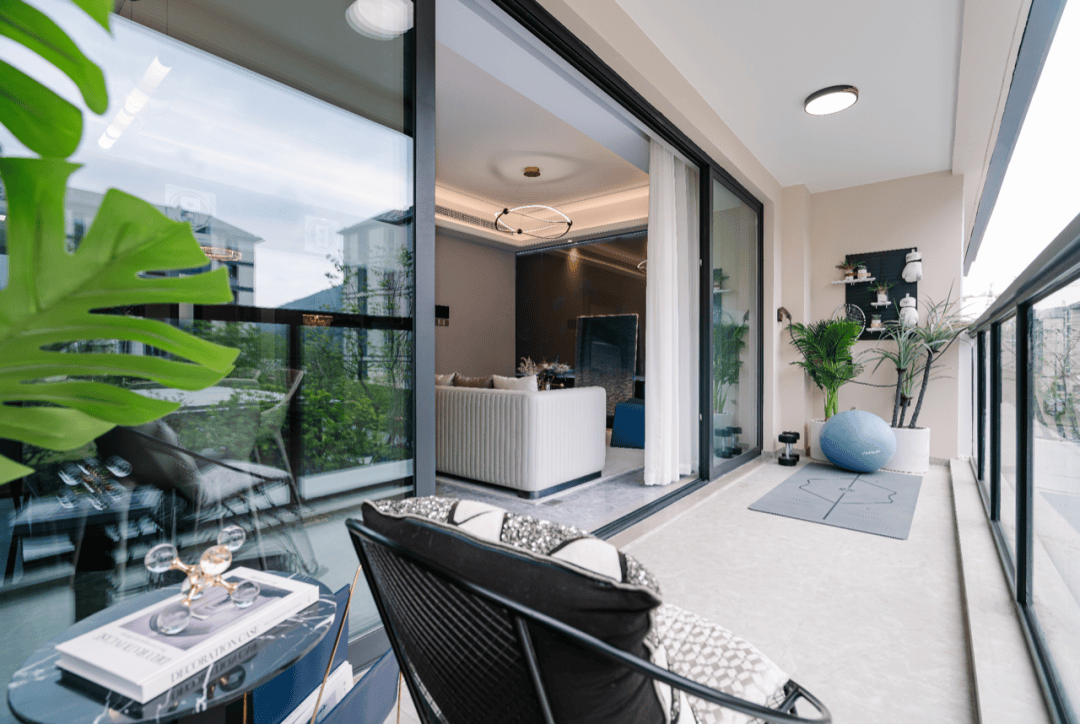 约6.7 米宽景阳台与大尺度双面宽会客厅完美搭配,成就至高的生活礼遇。宽景阳台宛如一个空中花园,摆放舒适躺椅,沏一壶香醇茗茶,悠然欣赏山景。双面宽会客厅则彰显着非凡的气度,举办派对或亲友相聚,尽显尊贵。成为居者展现生活艺术与享受生活的理想之所。