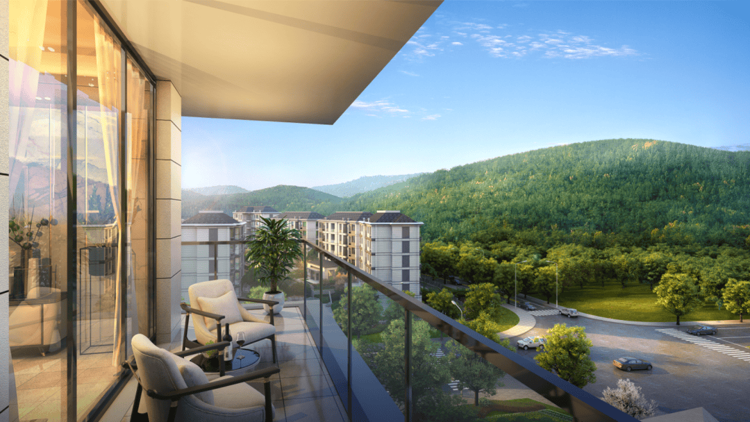 其次,真正的半山豪宅,必然依托天然山地优势,使得建筑坐落在自然环境之中,被天然植被环绕,风景秀丽、环境清幽、空气清新,拥有私密的生活环境,同时能享受到优质的空气、绿化,入则宁静。