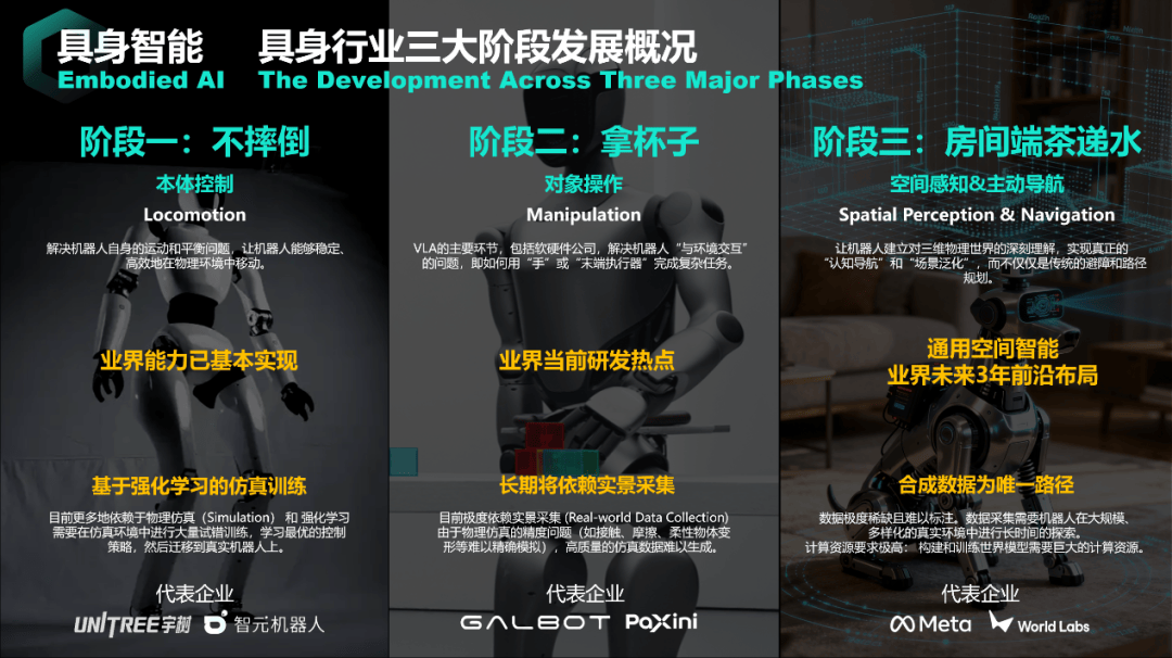 刘紫东:是的。现在具身智能领域看起来很热闹,其实解决的问题还相对有限。我们把机器人归纳为三大阶段: