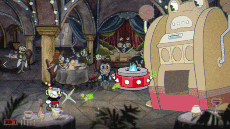 游戏的音乐也是一大亮点,整个原声带有56首不同的曲子,包含了复古爵士,蓝调,圆舞曲等各种风格,伴随着和 Boss 的激烈战斗,这些音乐烘托出了更加喧闹有趣的氛围