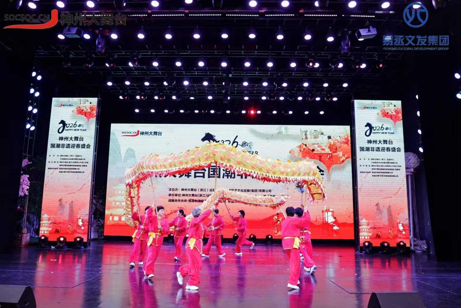 综上所述,易丞文发集团主办的“神州大舞台26年年度盛典”(宁波国潮非遗迎春晚会),是一次成功的文化实践。它证明了在“十五五”规划开局之年, 民营文化企业完全有能力通过精准的市场定位、创新的内容表达与灵活的商业模式,打造出具有社会影响力与商业价值的文化产品。